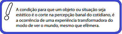 Várias situações ou objetos podem promover uma experiência estética, mas é a arte que se ocupa especialmente dela.