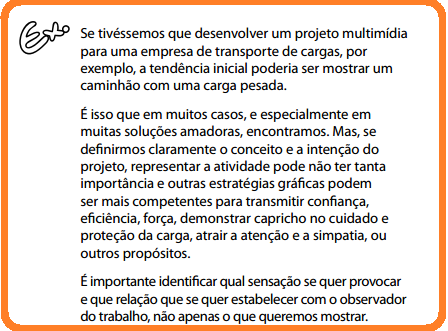 Além disso, é importante desenvolver sempre, de modo reflexivo, os métodos de trabalho. Desenvolver habilidades para elaborar sistemas de comunicação eficientes, estéticos e éticos é um processo permanente.