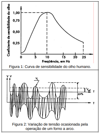 O fenômeno de cintilação luminosa, ou efeito flicker é basicamente constatado através da impressão visual resultante das variações do fluxo luminoso de lâmpadas, principalmente as do tipo incandescentes. Entre as causas do fenômeno são citadas cargas com ciclo variável, cuja freqüência de operação produz uma modulação da magnitude da tensão da rede na faixa de 0 a 30 Hz. Nessa faixa de frequências, o olho humano é extremamente sensível às variações da emissão luminosa das lâmpadas, sendo que a máxima sensibilidade do olho é em torno de 10 Hz.