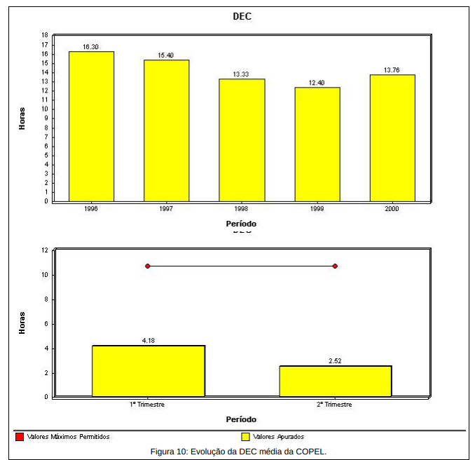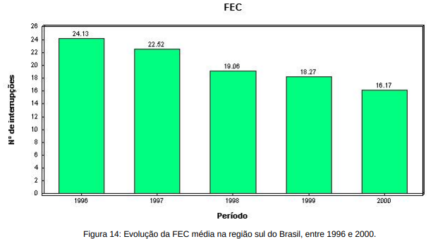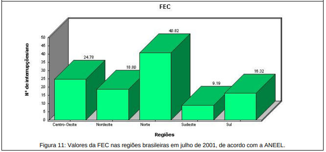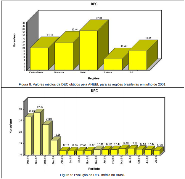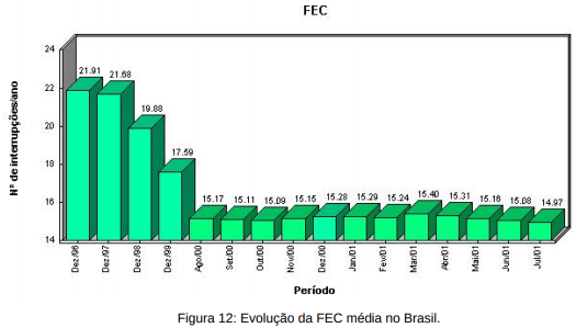 O DEC (Duração Equivalente de Interrupção por Unidade Consumidora) indica o número de horas em média que um consumidor fica sem energia elétrica durante um período, geralmente mensal. Já o FEC (Freqüência Equivalente de Interrupção por Unidade Consumidora) indica quantas vezes, em média, houve interrupção na unidade consumidora (residência, comércio, indústria etc).