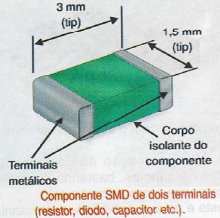 Os componentes SMD são dispositivos do mesmo modo que os componentes comuns: resistores, capacitores, diodos, indutores, transistores etc.