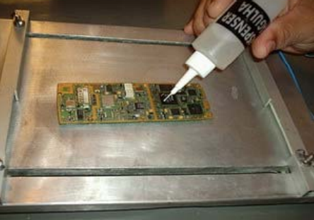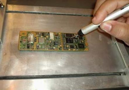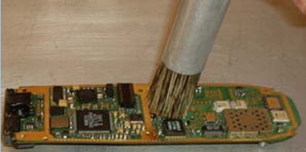 Após retrabalhar, antes de recolocar as novas blindagens é necessário a limpeza com freom e álcool isopropílico.