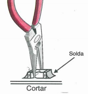 O uso da pinça comum dificulta a fixação no componente sem danificar seus terminais.