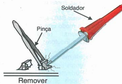 Para o retrabalho do componente de grande dimensão é aconselhável a utilização de uma pinça a vácuo, própria para a retirada deste componente.