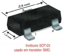 Os transistores são fornecidos normalmente em invólucros do tipo SOT23, nas dimensões e formato ilustrado na figura abaixo.