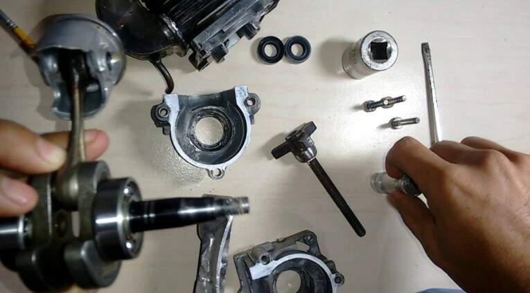 Aviso: Antes de começar a montagem, temos que colocar óleo 2 tempos nos rolamentos, untar a parte interna do cilindro e a parte externa do pistão.