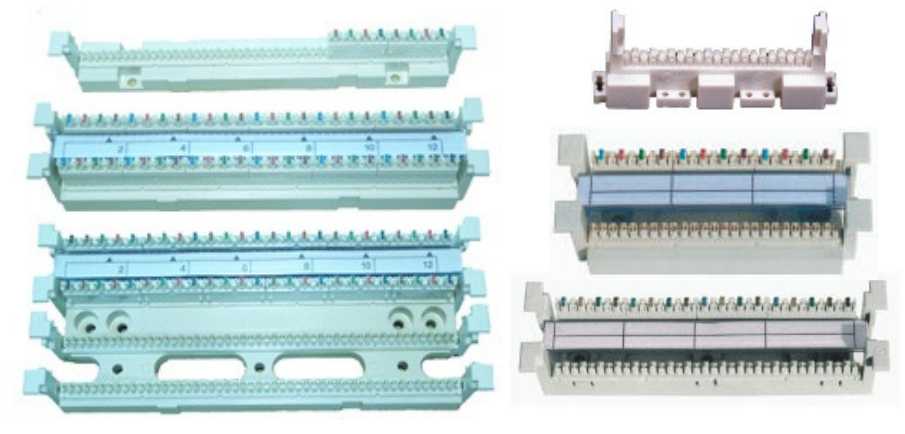 Os painéis de conexão (patch panels) utilizam conexões 110 na parte traseira e conexões modulares na parte frontal. Ele está disponível em 12, 24, 48 e 96 portas.