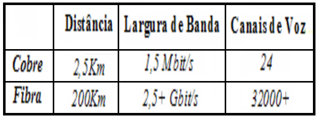 Vantagens da fibra óptica: