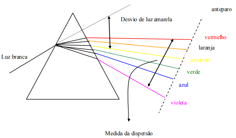 Uma medida conveniente deste desvio é dada pelo desvio da luz amarela, pois o amarelo está mais ou menos no meio do vermelho e do violeta. Como o desvio e o índice de refração estão relacionados o desvio do espectro inteiro é definido pelo índice de refração da luz amarela, enquanto que a dispersão depende da diferença entre os índices de refração para o violeta e o vermelho.