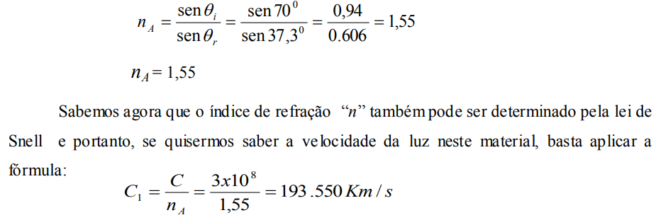 Então podemos concluir que, quanto maior o índice de refração, menor a velocidade de propagação da luz.