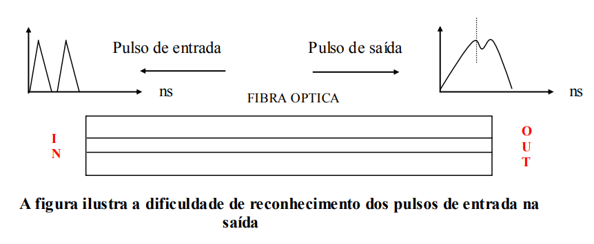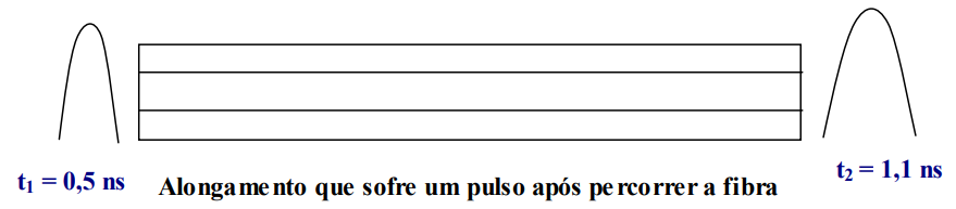 Um pequeno pulso óptico se alarga depois da propagação em uma fibra ótica em virtude dos seguintes mecanismos: