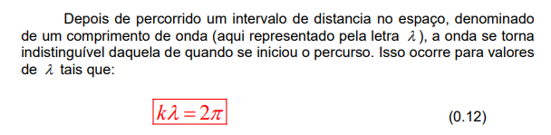 De (1.11) e (1.12), nota-se que existe uma relação bem simples entre a velocidade da onda, a frequência e o comprimento de onda: