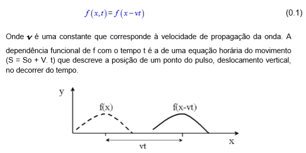 Um pulso ou uma perturbação que propague na direção do eixo x e no sentido positivo do eixo (coordenadas crescentes com o tempo) pode ser representado por uma função f de x e t (o perfil da onda), que depende da coordenada x e do tempo da seguinte forma: