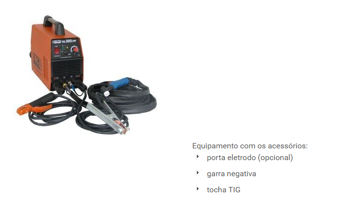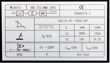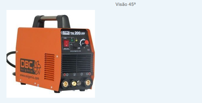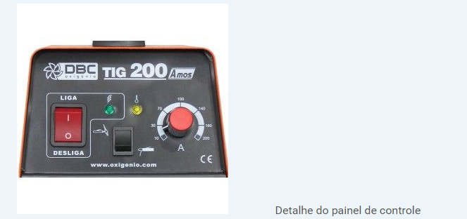 * uma TIG DBC 200A, tem uma carga máxima nominal de 7,5 Kva e tensão máxima de 28 Amps segundo dados do fabricante, para utilização em monofásica, 220V – 60Hz.