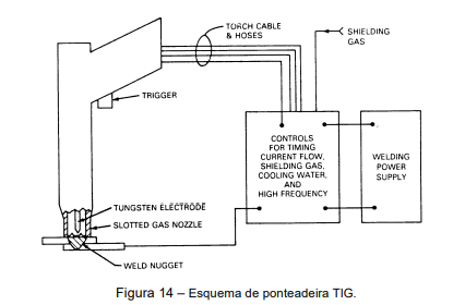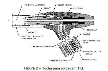 O processo de soldagem TIG ou Gas Tungsten Arc Welding ( GTAW ), como é mais conhecido atualmente, é um processo de soldagem a arco elétrico que utiliza um arco entre um eletrodo não consumível de tungstênio e a poça de soldagem. Conforme pode-se notar pela figura abaixo, a poça de soldagem, o eletrodo e parte do cordão são protegidos através do gás de proteção que é soprado pelo bocal da tocha. No processo, pode-se utilizar adição ou não (solda autógena), e seu grande desenvolvimento deveu-se à necessidade de disponibilidade de processos eficientes de soldagem para materiais difíceis, como o alumínio e magnésio, notadamente na indústria da aviação no começo da Segunda grande guerra mundial. Assim, com o seu aperfeiçoamento, surgiu um processo de alta qualidade e relativo baixo custo, de uso em aplicações diversas, com inúmeras vantagens que descreveremos a seguir.