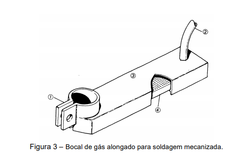 Gás de proteção é dirigido para a zona de soldagem por bocais fixados na extremidade das tochas. O objetivo da utilização dos bocais é produzir um fluxo laminar do gás de proteção. Os bocais podem ser fabricados de materiais cerâmicos, metais, metais revestidos com cerâmicos, quartzo fundido ou outros materiais. Dentre estes, os bocais cerâmicos são os mais baratos e mais populares, apesar de serem quebradiços e necessitarem de troca constante. Bocais metálicos tem vida útil mais longa e são usados principalmente em processos automatizados, que operam com correntes acima de 250 A. Os aspectos mais importantes nos bocais são suas dimensões e perfis. Os bocais devem ser largos o suficiente para prover cobertura da área de soldagem pelo gás e devem estar de acordo com o volume e a densidade necessária do gás no processo. Se a vazão do gás for excessiva para um determinado diâmetro, a eficiência da proteção é afetada devido a turbulência. Vazões mais altas, sem este efeito de turbulência, requerem maiores diâmetros de bocais, condições estas, essenciais para altas correntes. Na tabela seguinte, pode-se observar diversos diâmetros de eletrodos, correntes de trabalho e diâmetros dos bocais.