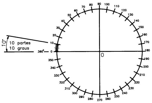 Uma das formas para se medir o ângulo consiste em dividir a circunferência em 360 partes iguais. Cada uma dessas partes corresponde a 1 grau (1º).