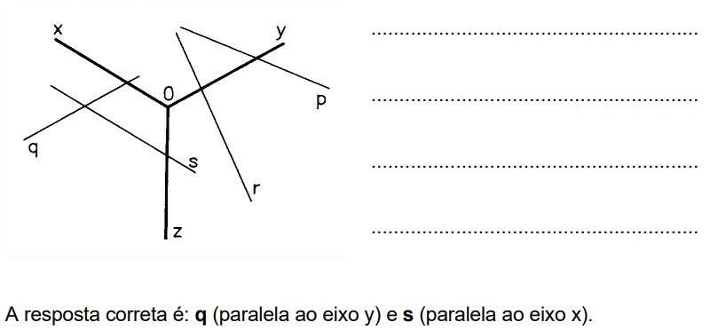A resposta correta é: q (paralela ao eixo y) e s (paralela ao eixo x).