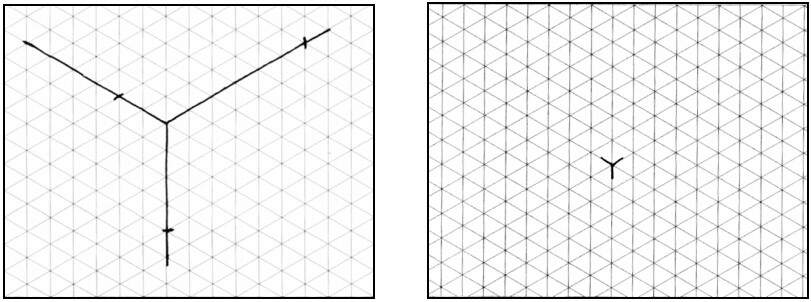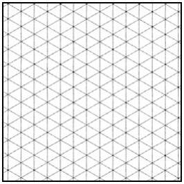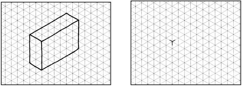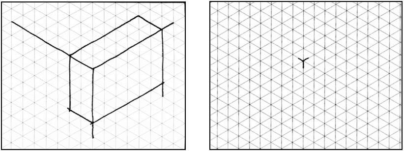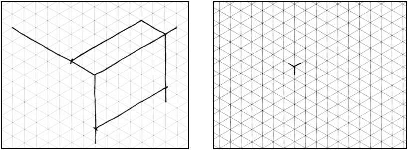 Para facilitar o traçado da perspectiva isométrica à mão livre, usaremos um tipo de papel reticulado que apresenta uma rede de linhas que formam entre si ângulos de 120º. Essas linhas servem como guia para orientar o traçado do ângulo correto da perspectiva isométrica.