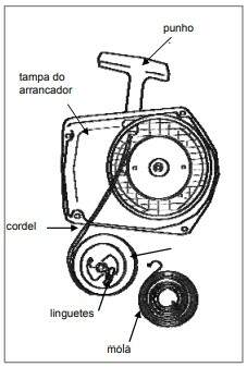 Não tensionar excessivamente a mola, pois poderá danificá-la ou mesmo parti-la ao puxar o cordel do arrancador!