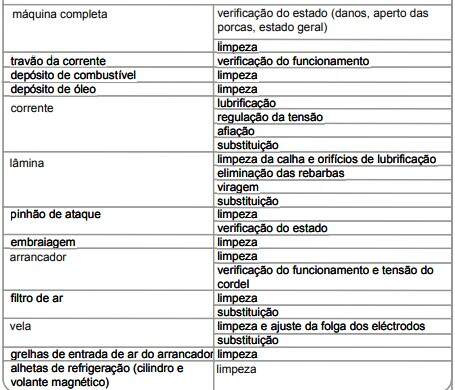- Zelar pela conservação e manutenção da motosserra, mantendo-a sempre nas melhores condições de funcionamento e de armazenamento.