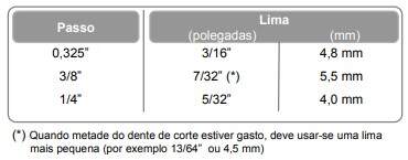 - Escolher a lima adequada ao passo dos dentes de corte da corrente: