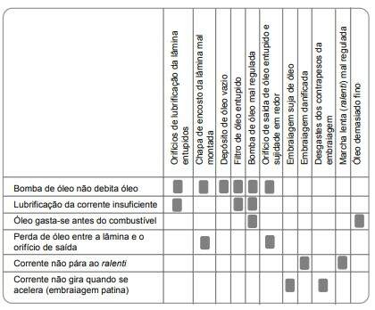A falta de lubrificação ou o uso de correntes não devidamente tensionadas danificam a lâmina.