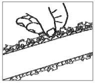 - Verificar se a lubrificação da corrente se está a realizar: com a motosserra em plena aceleração, aproximar a ponta da lâmina de um cepo ou outra superfície; se deixar um rasto de óleo marcado é sinal de adequada lubrificação