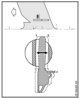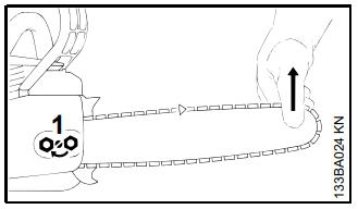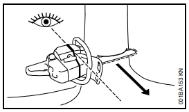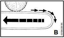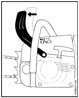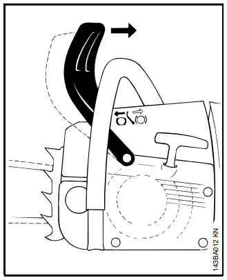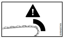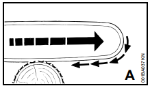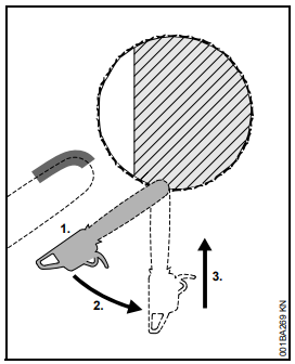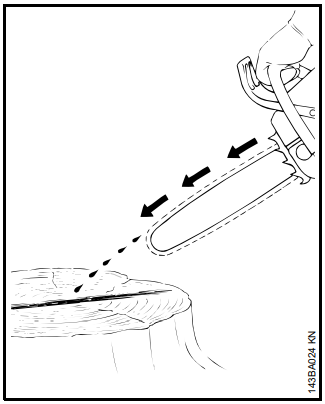 Se, ao serrar com a parte superior do sabre - de baixo para cima - a corrente trancar ou encontrar um obstáculo firme na madeira, a motosserra pode ser repulsada na direção do operador.