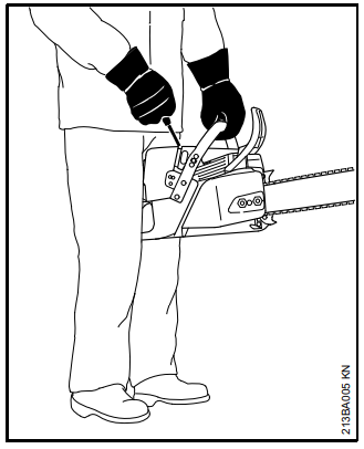 Segurar a motosserra com firmeza e com as duas mãos;