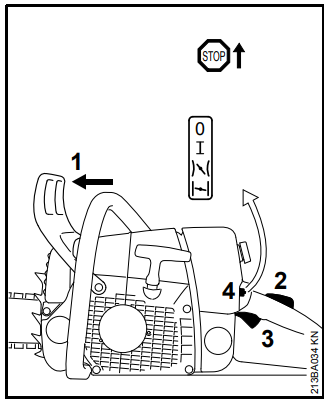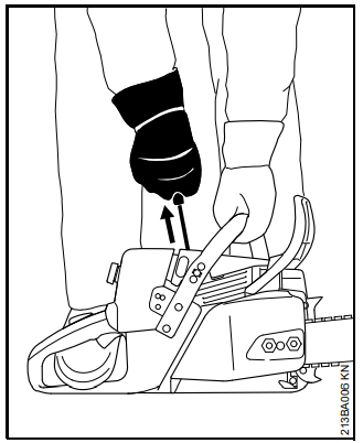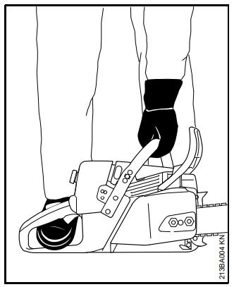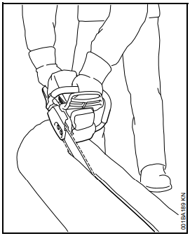 Nenhuma parte do corpo deve estar na direção do corte. Tirar a motosserra da madeira somente com a corrente girando. Utilizar a máquina somente para serrar; não utilizá-la para afastar galhos, raízes ou outros objetos. Não cortar galhos que estão suspensos com a parte superior do sabre (de baixo para cima).