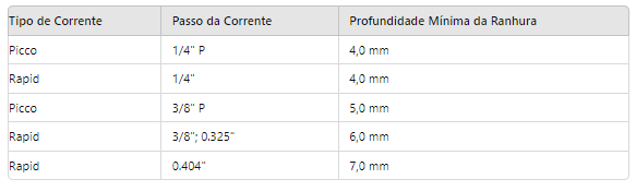 Sabre: Barra guia que suporta e direciona a corrente de corte.
