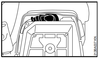 Botão do fecho da tampa do filtro: Dispositivo que prende a tampa do filtro de ar, facilitando sua remoção e substituição para manutenção.