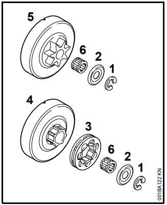 As peças de reposição originais STIHL podem ser reconhecidas pelo código da peça de reposição STIHL, pela gravação { e, dependendo do caso, pelo sinal K (em peças pequenas este sinal também pode estar sozinho).