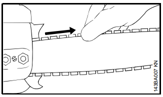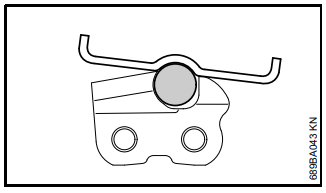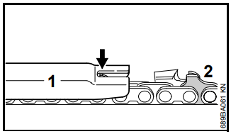 A corrente fica presa no corte na ponta do sabre.
