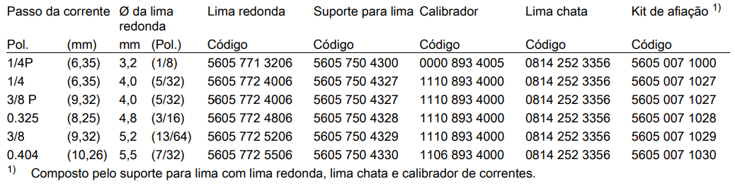 Utilizar sabres curtos sempre que possível: corrente, sabre e pinhão da corrente devem corresponder entre si e combinar com a motosserra.