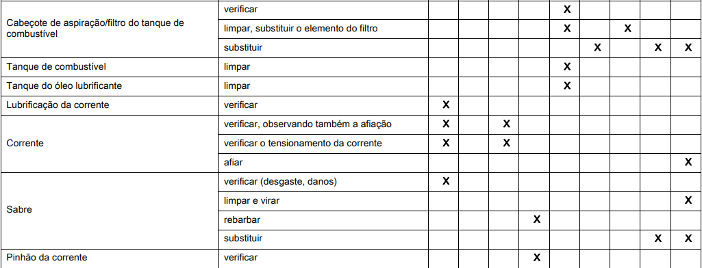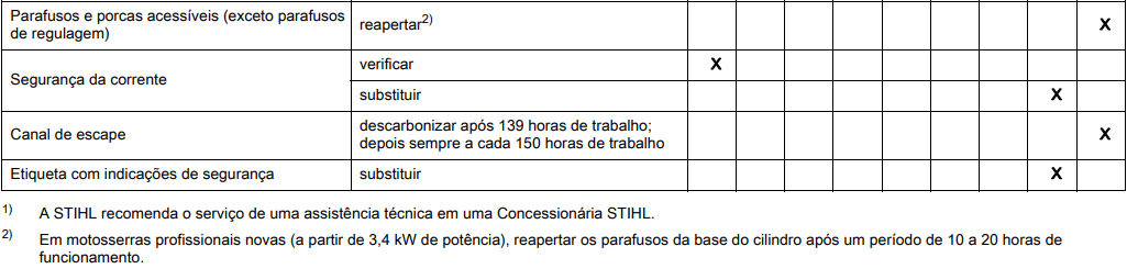 Usuários da motosserra podem efetuar somente os trabalhos de manutenção e de conservação descritos neste manual. Demais consertos devem ser realizados somente por uma Assistência Técnica Autorizada STIHL.