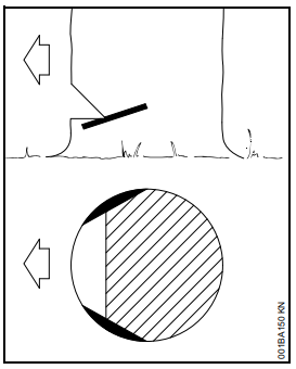 A corrente entra involuntariamente em contato com a madeira ou um objeto duro com o quarto superior da ponta do sabre. Por exemplo, ao entrar em contato com outro galho durante o desgalhamento;