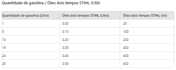 - Capacidade do tanque de óleo: 325 cm³ (0,325 l)