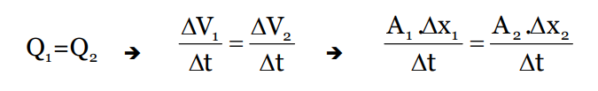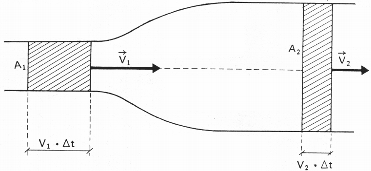 Como o líquido é incompressível, o volume que entra no tubo no tempo ? t é aquele existente no cilindro de base A¹ e altura 1 1 ? x =v .?t.Esse volume é igual àquele que, no mesmo tempo, sai da parte cuja secção tem área A2 .