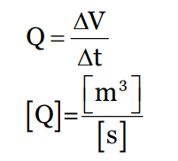 Se dividirmos o volume escoado ? V pelo tempo de escoamento ? t, teremos uma grandeza denominada vazão em volume, e é representada pela letra Q.