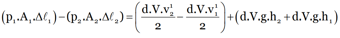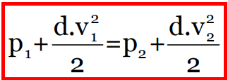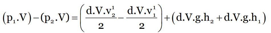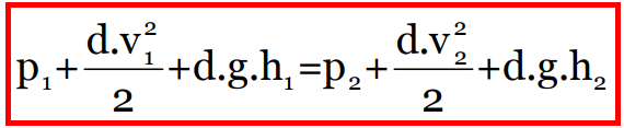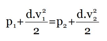 Considerando duas secções retas de áreas A¹ e A² num tubo de corrente, sejam p¹ e p² as pressões nessas secções.A densidade do fluido é "d" e as velocidades de escoamento valem,respectivamente v¹ e v². Sejam