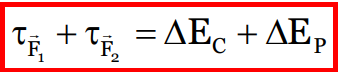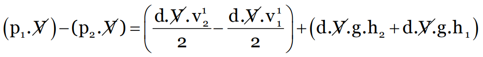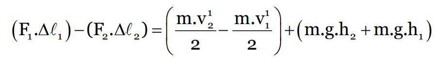 é igual a soma das variações das energias cinética e potencial entre as secções (1) e (2):