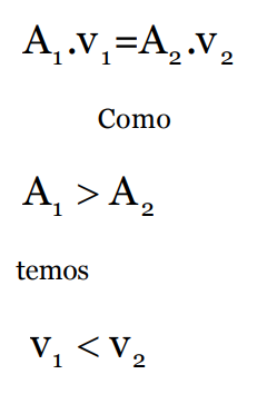 Pela equação da continuidade podemos afirmar que “a velocidade de escoamento é inversamente proporcional à área da secção transversal”.