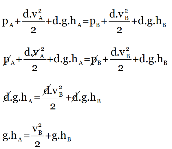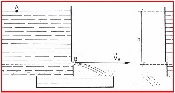 Para ser possível o cálculo da velocidade de escoamento do fluido através do pequeno orifício B, basta considerar que: