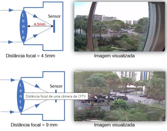 A distância focal é a distância entre o centro de uma lente ou espelho curvo e seu foco. Esse é o fator mais importante a ser considerado, para que você possa determinar até que ponto sua câmera de segurança pode ver.