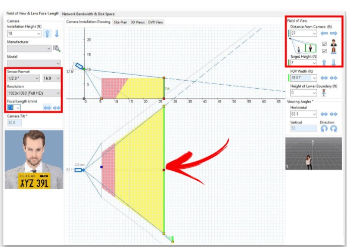 Você precisa levar em consideração a que distância a pessoa ou o objeto está da câmera de segurança e pode até usar essas informações para calcular se sua câmera é capaz de identificar alguém a essa distância.