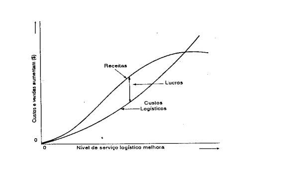 Custos logísticos tendem a crescer a taxas crescentes à medida que o nível de serviço melhora, conforme indica a figura seguinte.