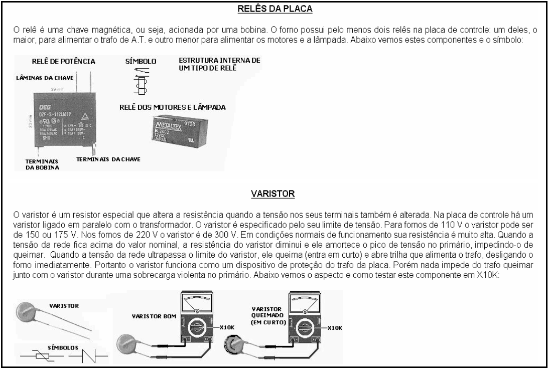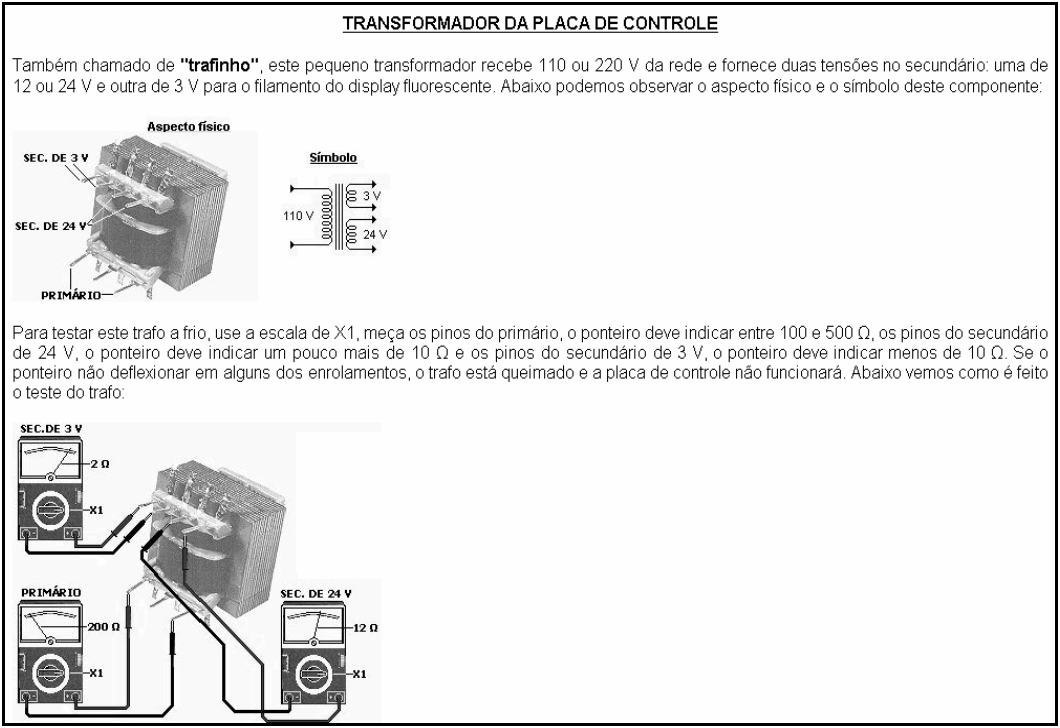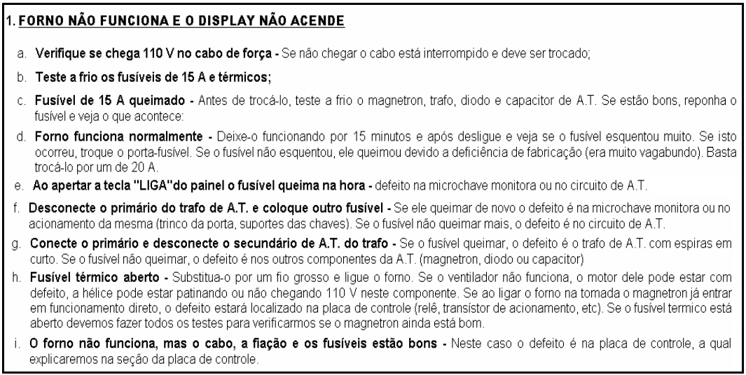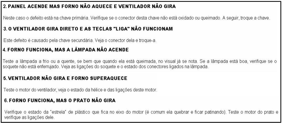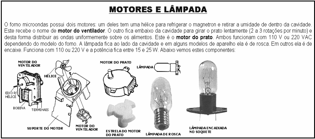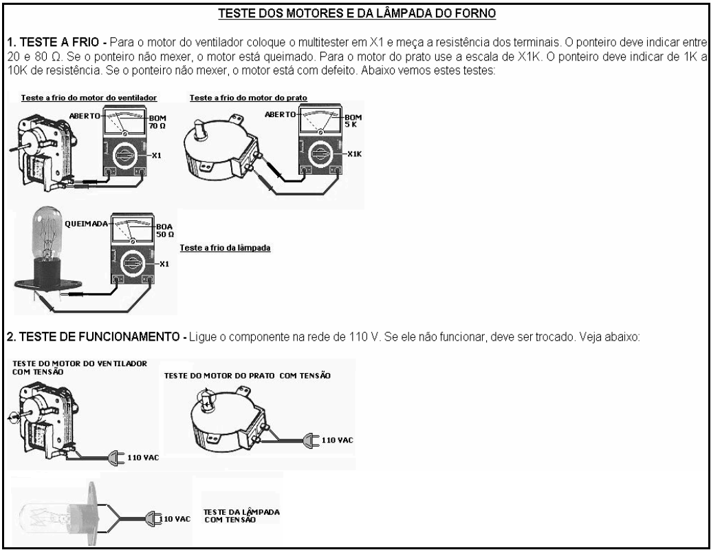 - Testar todos os componentes desconectados (magnetron, transformador, travas de segurança,ventilador ,motor do prato, lâmpada);