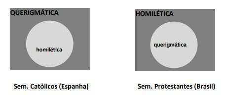 Assim, nos seminários de tradição católica da Espanha, a homilética é uma disciplina inserida numa área maior, a querigmática, enquanto que, de forma freqüente, nos seminários e faculdades teológicas protestantes do Brasil, a querigmática está inserida na disciplina da homilética.